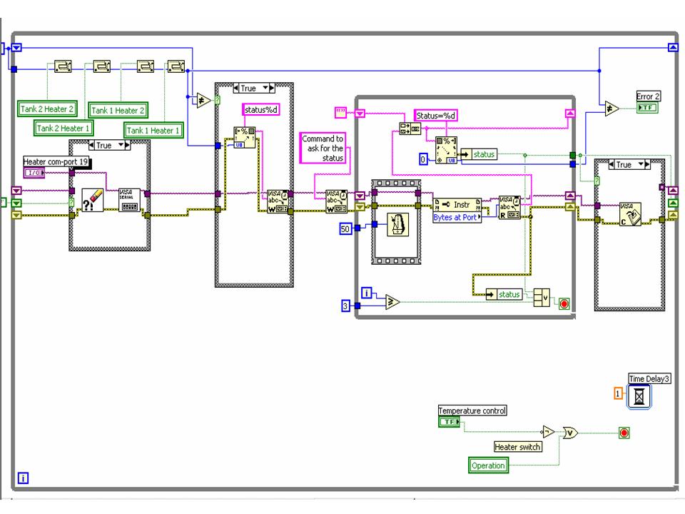 ' schrieb:offensichtlich stimmt die Kommunikation zwischen dem Com19-Port und LabVIEW nicht. Hab' deine Struktur in unser Programm eingefuegt.(heater relay)