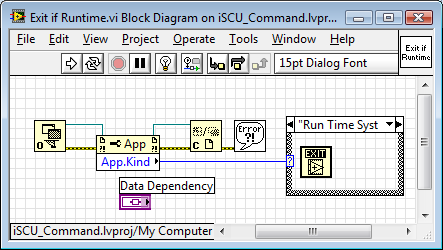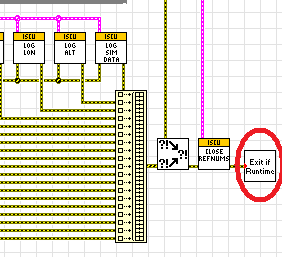 Was mach ich denn, wenn das VI in der IDE läuft? Nicht nur, dass auch das BD geschlossen wird - schließlich heißt es FP, und nicht FP+BD oder auch VI -, nein, es werden auch alle Änderungen im BD ignoriert, also verworfen - und das ohne nachzufragen. Wenn ich in der IDE bin, also keine EXE, möchte ich gerne haben, dass das BD offen bleibt, wenn ich es auf gemacht habe.