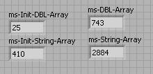 1. Zeit zum Erstellen des Arrays (einmal DBL, einmal String), klar ist String um Welten langsamer, aber ich lande doch bei noch erträglichen 500ms zur Initialisierung.