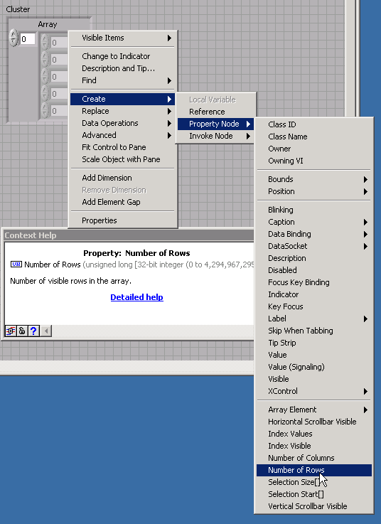 Natürlich kannst du die Anzeigegröße der Arrays zur Laufzeit im Blockdiagramm verändern. Standardmäßig geht jede Aussehensveränderung über PropertyNodes (oder manchmal auch InvokeNodes). Das solltest du inzwischen wissen.