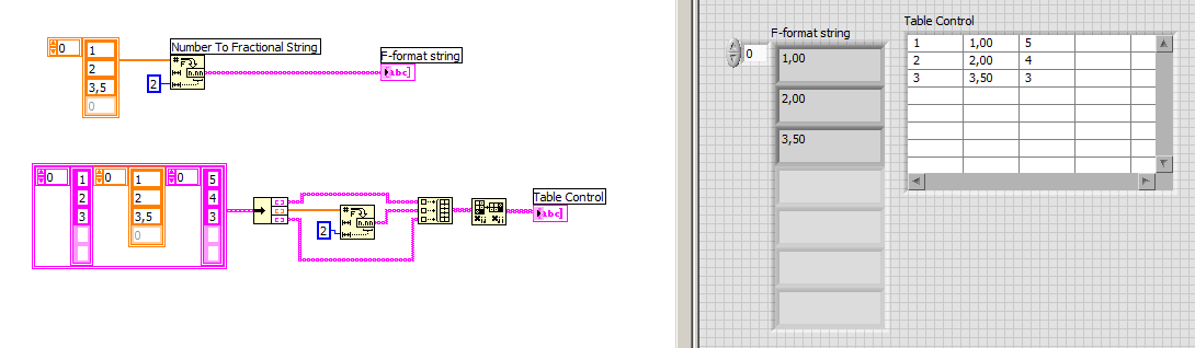 Mögliche Alternativen: Du verwendest eine echte Tabelle (Table-Control), oder du wandelst die Zahlen in Strings und ersetzt das DBL-Array in deinem Cluster, etc. etc. etc.
