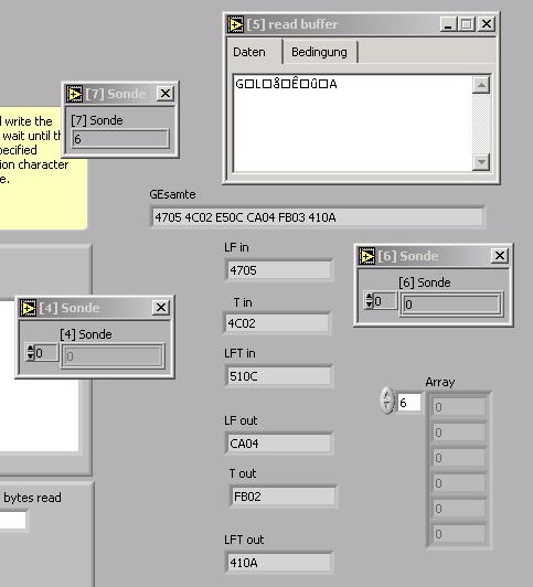 Terminal erkennt das ganze richtig als Binär bzw stellt es auch als HEX da wenn ich will. So muss es auch LabVIEW aus dem VISA übergeben! Wieso LabVIEW aus nem Binär code gleich ASCII macht verstehe ich nicht! kann ich nicht das schon unterbinden und zb. nur das Binäre lesen in nen Cluster und dann selber umwandeln. vielleicht ist das einfacher aber habe keine Möglichkeit gefunden, die Ausgabe "Lesepuffer" von VISA zu beeinflussen!
