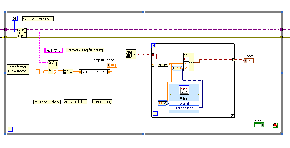 stehe gerade etwas auf dem Schlauch. Möchte nun den Averade Moving Filter zur Glättung meiner Temperaturkurve einsetzen. Zur Zeit bekomme ich ja 2 Temperaturkurven, möche aber nur die eine glätten. Wie schaffe ich es, dass er mir nur jeden 2. Wert aus dem Array liest und daraus den Moving Average bildet und im gleichen Diagramm darstellt?