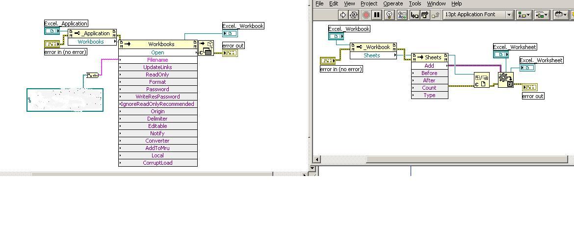 SeBa hat gesagt in den SubVIs... War für mich auch einleuchtend / hab die davor schon offen gehabt und angeschaut, kapier aber nicht wie ich das anstellen soll. Ich hab im VI "OpenExcel" schon versucht mit einer Konstante oder Control-Button eine Eingabe zu erreichen, da hab ich aber einen Fehler bekommen. Nun weis ich hier nicht weiter...