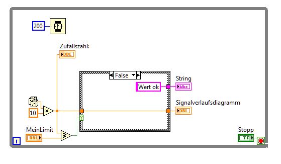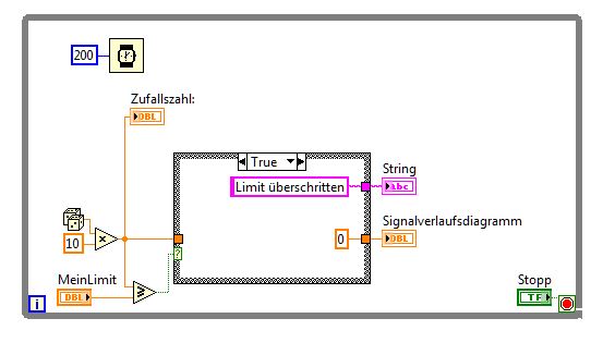Zu Deiner anderen Frage, Du machst einen Vergleich mit größer/gleich, dann kommt ein TRUE oder FALSE heraus. Das hängst Du an einen Case und wertest das Ergebnis aus. Willst Du eine Null an den Signalverlauf hängen, dann hänge eine Null dran im TRUE-Case, oder eben den Wert, den Du sonst haben willst.