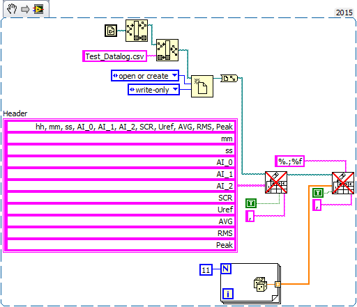 Datalogging mit "Write to Spreadsheet" in einer .csv-Datei