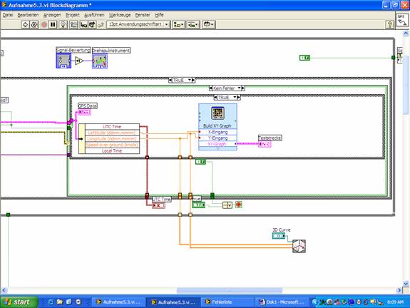 Für aktuelle Werte kannst Du ein Chart nehmen (hier nicht sinnvoll, da Du ja einen 3D-Graph verwendest), oder Du hängst jeweils Deine aktuellen Werte (Build Array und Schieberegister) an Dein Array an und schreibst den Graph nach jedem Durchlauf neu.