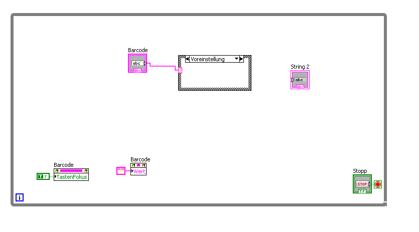 Also: wie schon beschrieben den "Barcode"-String nach der Auswertung löschen. Tipp dazu: da du ja eh schon die PropertyNode "Keyfocus" benutzt, kannst du sie um die Property "Value" erweitern und mit einem "empty string" verdrahten. Jetzt noch den Dataflow per Errorcluster herstellen, der fehlte in deinem letzten Bild...