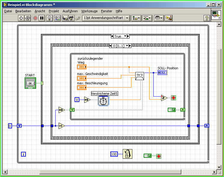 Das ist ganz einfach: LabVIEW arbeitet nach dem Datenflußprinzip.