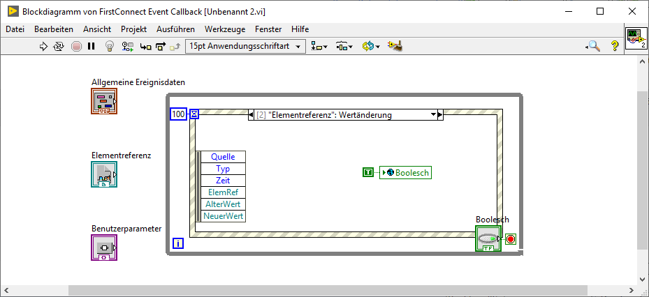 (27.06.2019 19:37 )IchSelbst schrieb:  Im Callback-VI brauchst du keine Event-Sequenz. Nur die Anweisung "Boolesch = true" ist notwendig.