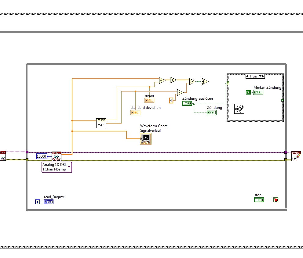 in dem Beispiel vergleichst du einen Messwert mit dem Limit. Ok dann soll ich die " Merke_Zündung" einfach seperat in der Case-Struktur lassen und " Rising Edge" mit dem Wert der Spannung rechnen oder? Und sorry aber was meinst du genau als Inverter? Den Vergleichsoperator?