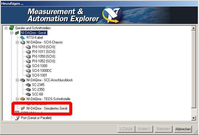 Du hast den Eintrag "DAQmx simuliertes Geraet" ->siehe screenshot
