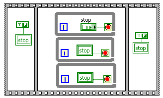 Falsch ist es auf jeden Fall, bei einer der drei Schleifen eine False-Konstante nach außen zu führen und dort die lokale Schaltervariable anzuschließen. Dann wird womöglich der Schalter zurückgesetzt zu einem zu frühen Zeitpunkt, wenn die anderen beiden Schleifen noch gar nicht beendet sind.