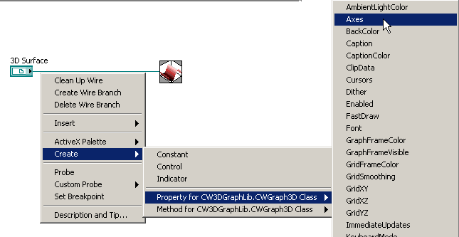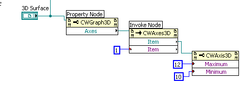 Zunächst wählt man mit einem Eigenschaftsknoten die Achsen aus, dann mit einem Methodenknoten DIE entsprechende Achse. Wert 0 bis 2. Gewöhnungsbedürftig finde ich, dass man einen Integerwert an eine Variantschnittstelle anschließen muss.