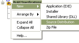 Build Specifications->New->Source Distribution.