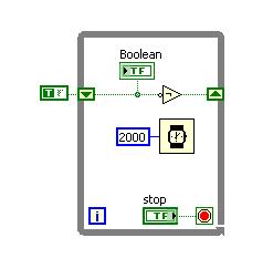 Bei den Elementen handelt es sich nur um Anzeige- bzw. Kontrollelemente. Das mit Boolean überschriebene ist vermutlich einfach eine LED, die den aktuelle Stand anzeigt. Das mit Stop überschriebene ist ein normales Bedienelement mit dem die Abarbeitung der Schleife beendet wird.