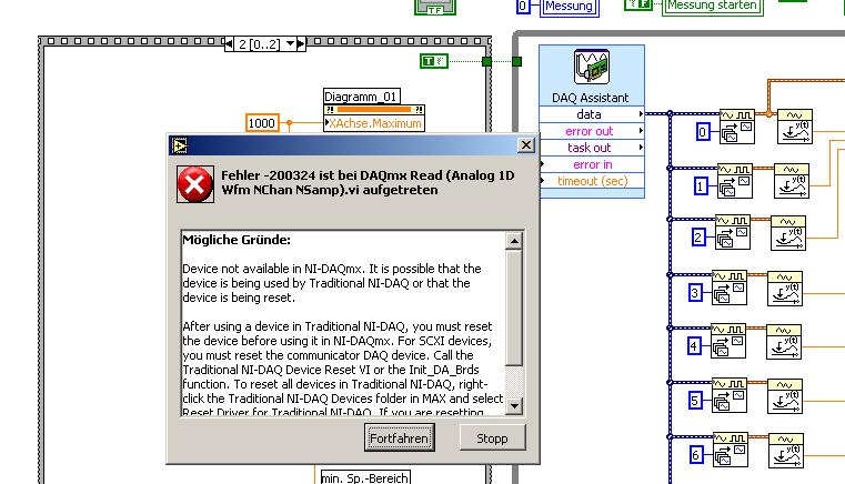 Jetzt habe ich das Problem das wenn ich das Programm starte immer eine Fehlermeldung kommt. Ich habe das gefüll das man keine zwei DAQ-Assistenten gleichzeitg benutzen kann.