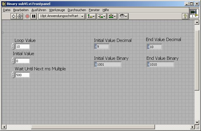 so wie ich es gedacht habe. Du hast ein Subvi, in diesem die For-Loop, die dir die Zahlen hochzählt. Das wird komplett abgearbeitet, und erst am Ende schreibst du dann die letzte Zahl per Out.vi an deinen Parallelport.
