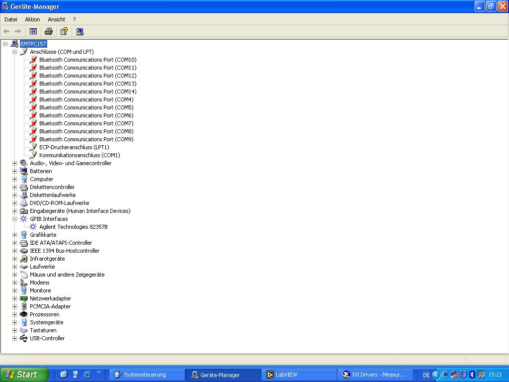 ich habe jetzt nochmal meinen recher komplett plattgemacht, winXP installiert, die treiber für das interface installiert, visa installiert, LabVIEW neu installiert. Trotzdem kann ich im "Measurement & Automation" meine GPIB schnittstelle nicht finden. Kann in der hilfefunktion aber auch nichts finden. Meine frage wäre nun wie ich nun weiter vorgehen kann?