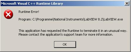 Jedenfalls konnte ich die Fehlerquelle eingrenzen: Der Zusatz Installer vom NI-DAQmx 8.3 hatte den Fehler ausgelöst. Als ich diesen weglies klappte alles Fehlerfrei.