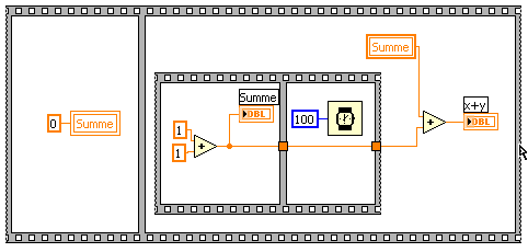 Bedenke, LabVIEW kann den Code in mehrere Threads zerlegen, die parallel ablaufen.