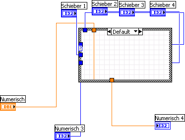 Also, wenn du mehrere Fälle an Hand von i==0, i==1, ... aufbaust, dann verbindet man in LV die Integer-Variable direkt an den Eingang der Case-Struktur. Der else-Case, der alles andere beinhaltet, ist der Default-Fall.