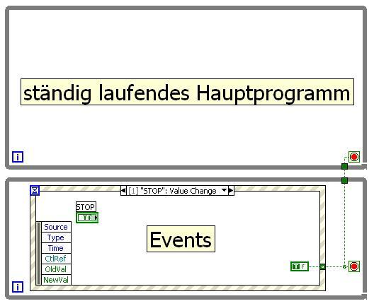 Ich habe ein grundsätzliches Verständnisproblem bei der Anwendung von Event Structures. Und zwar würde mich interessieren, wie man diese Event Structures korrekt einsetzen muss, wenn man quasi ein Hauptpragramm hat, welches ständig laufen soll und bei speziellen Ereignissen (z.B. Tastendrücke oder Seitenwechsel eines TabControl) eben diese Events (wie ein Interrupt) ausgeführt werden sollen.