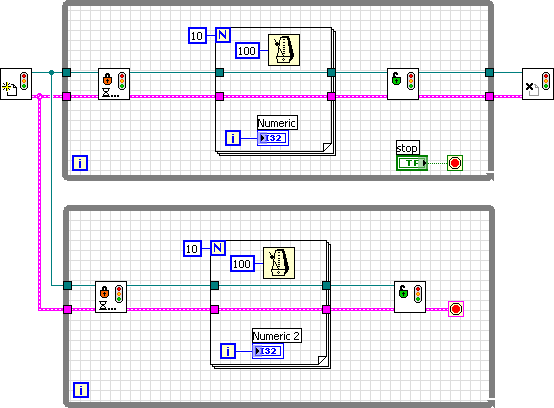 dein zweiter Gedanke - nur eine Schleife mit Eventstruktur - ist auch gut! Du benötitgst nicht unbedingt eine zweite Schleife! Damit die eine Schleife aber durchlaufen kann, musst du an der Eventstruktur eine Timeoutzeit angeben. Nach dieser wird die Schleife auf jeden Fall durchlaufen. Viele platzieren den eigentlichen Code dann im Timeout-Case, aber dass ist evtl. ein bisschen fragwürdig. Du kannst deinen Code einfach so in die Schleife packen...am besten verwendet man dann ne State Machine, d.h. eine Case-Struktur in einer While-Schleife, (mit-)gesteuert durch eine Eventstruktur. Dazu gibts hier im Forum jede Menge Beispiele...
