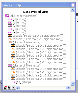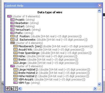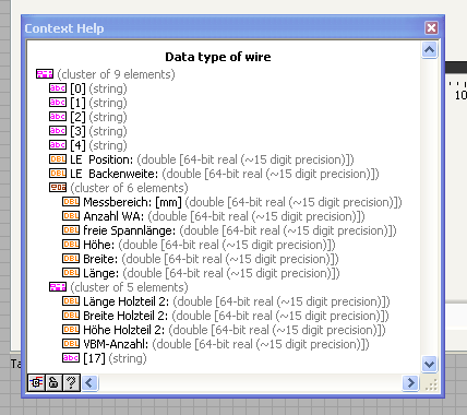 der erste cluster ist schön named da ja alle controls gelabelt sind <-> der cluster 2 kommt aus dem text file ohne controls und hat KEINE labels ... d.h. in unbundle by name verschwinden zum teil meine Labels? - zum teil: alle strings im cluster werden zu [1] [2] aber die "DBL" und "boolean" behalten die namen aus dem "named cluster" ???
