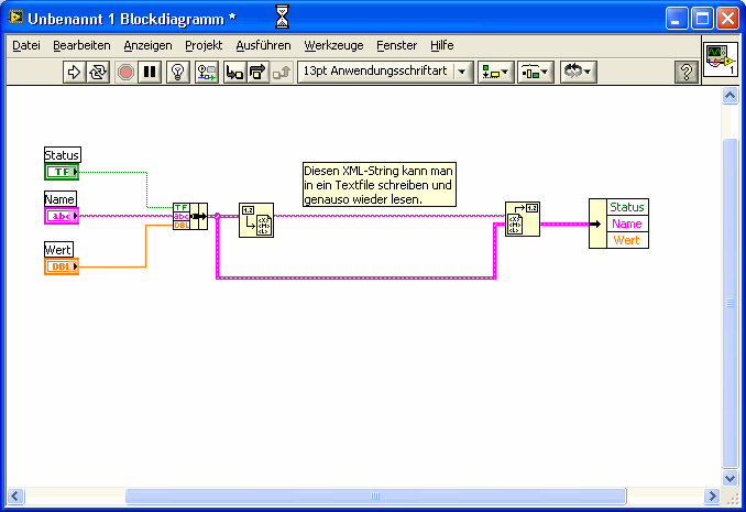 Ich arbeite an einem VI das einige Daten vom user abfrägt und diese in ein txt file speichert - allerdings mit String&Concatenate um Kommentare in das File einzufügen.