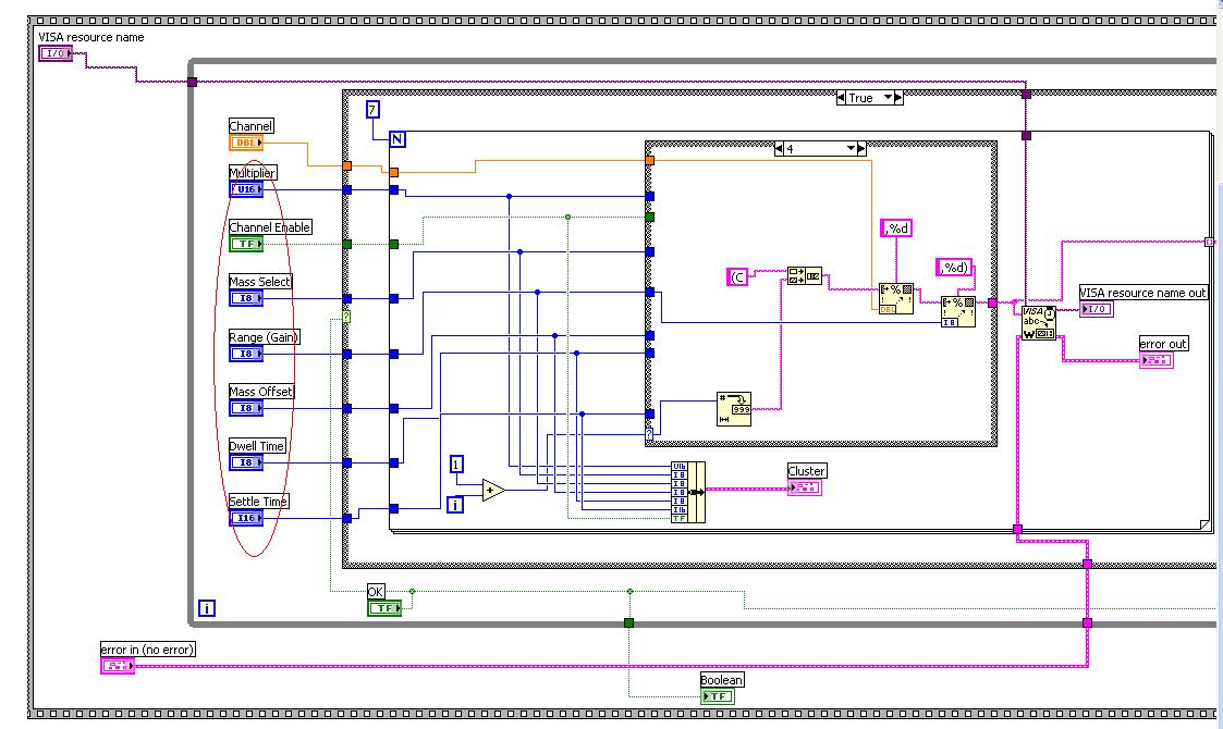 Ich möchte die Werte, die in obigen Bild rot umrandet sind an das subvi übergeben. Je nachdem was die case-structure sagt, soll das Frontpanel des subvi geöffnet werden, so dass man die Werte bei bedarf nocheinmal verändern kann, oder das subvi soll ungeöffnet ausgführt werden.