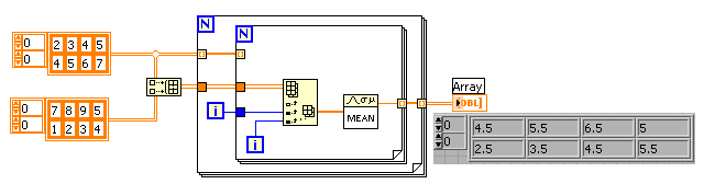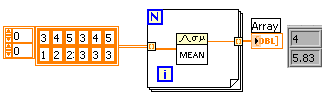 ich bin mir nicht ganz sicher, was du eigentlich machen willst...für den Mittelwert eines 1D-Array würde ich mal das hier nehmen: Functions >> Mathematics >> Probabilitiy + Statistics >> Mean.vi