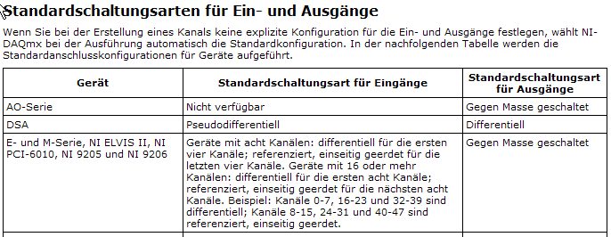 3. So, und jetzt zu (wahrscheinlich) deinem Verdrahtungsfehler: Da du bei der Konfiguration der AIs nicht explizit ausgewählt hast, wie du misst, wählt das der DAQmx-Treiber für dich. In der Hilfe findet sich hierzu für die M-Serie: