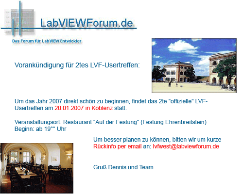 einen möglichen Veranstaltungsort für das LVF-Usertreffen (Koblenz) habe ich auch schon einmal "rausgesucht";)