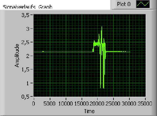 Also die Daten habe ich mit einer AD- Karte aufgenommen und mir in eine Datei geschrieben, die Datei lese ich durch die Funktion „Messwerte aus Datei lesen“ von LabVIEW aus. Dann errechne ich aus den AD Code mir die Spannungswerte und schreibe diese dann in ein Array. Habe dort nur die Spannungswerte. Die Daten wurden alle 0,0001 s abgeholt.