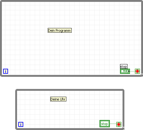 Deine While-Schleife soll als getrennte Task laufen. Also die While-Schleife mit der Uhr soll keine Verbindungen(Drähte) mit dem Rest des Programms haben und soll sich ausserhalb deiner Haupt-While-Schleife befinden.