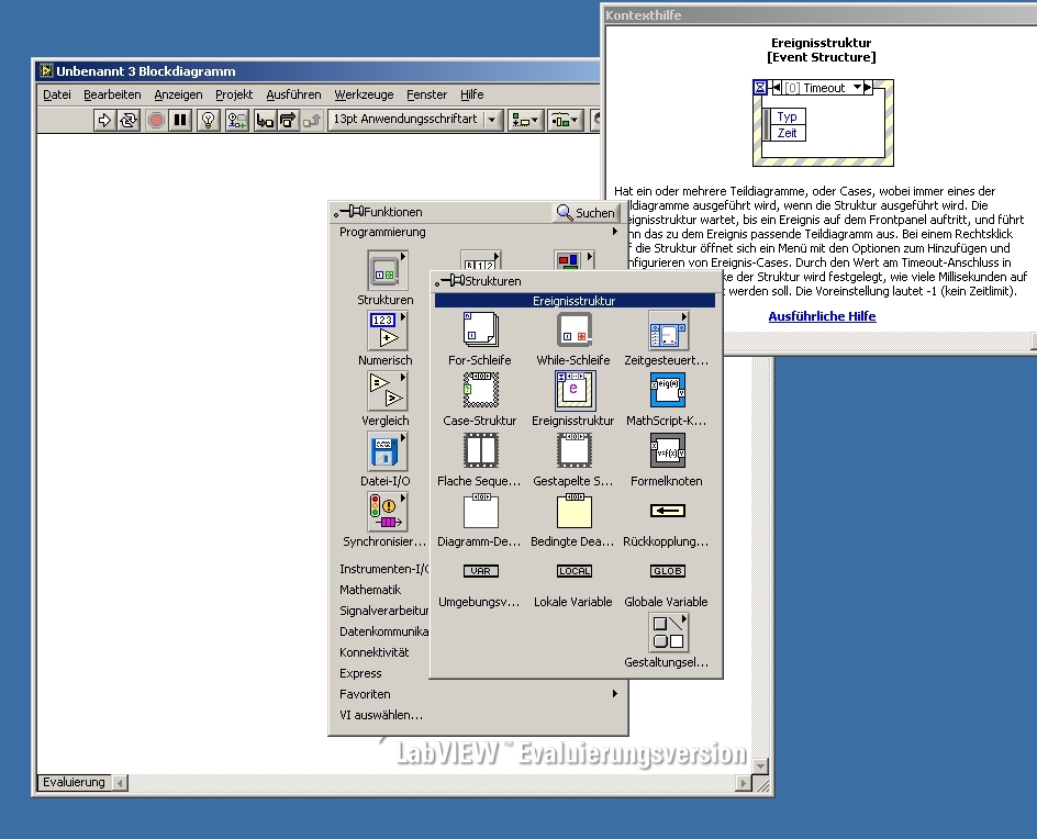 Allerdings laufen Programme, die mit einer Event Structure in LabVIEW Professional oder Full erstellt wurden (laut NI Homepage).