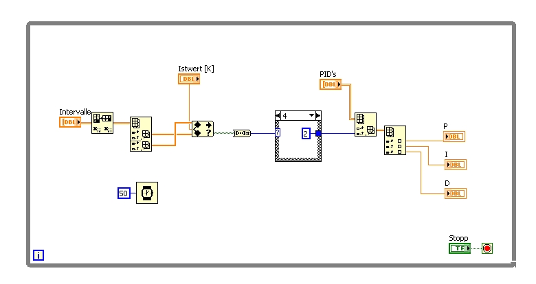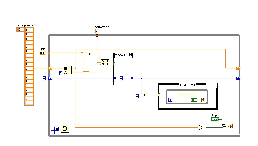 Kannst Du mir Deine Idee etwas genauer erläutern? Ich bin für jeden Tipp dankbar, weil LabVIEW-Neuling. An diesem Programm hab ich schon eine ganze Weile gesessen und jetzt sehe ich den Wald vor lauter Bäumen nicht mehr. Zur Not schicke ich mal das ganze Programm. Das wird aber erst nach dem 5. Juli was, weil am 1. Juli heirate ich erst einmal! Es hat also noch ein wenig Zeit. Trotzdem danke im Voraus und bis später!
