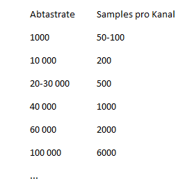 Abtastrate (Hz) Samples pro Kanal