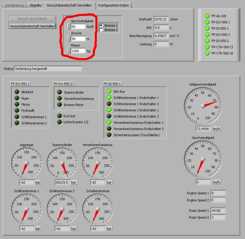 Nun bräuchte ich bei den Barometern (6 Anzeigeelemente links unten) auch einen grünen bzw. roten Bereich, ähnlich den oben genannten Elementen von eugen graf. Dieser Bereich sollte allerdings dynamisch (also zur Laufzeit) skalierbar sein, da sich die minimal- und maximal-Werte während der Programmausführung ändern können (durch laden eines eigenen Config-Files mit gespeicherten Werten).