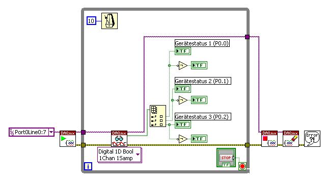 Das Gerät simuliere ich mithilfe eines Kippschalters, welcher am DAQmx auf Port 0.0 liegt.