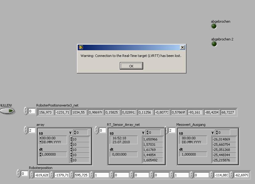 Immer wenn ich den Realtime Target laufen lasse(um anscheinend die Sensordaten in Echtzeit zu bekommen) und dann mein Vi laufen lasse, kommt nach einigen Sekunden folgende Meldung: