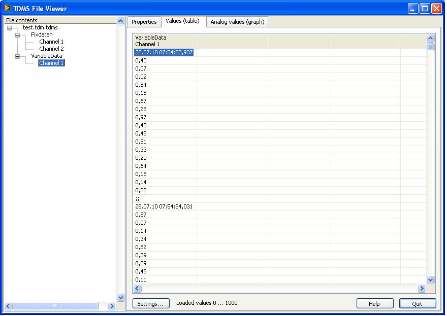 ' schrieb:Schön, dass du einen Screenshot vom Frontpanel des tdms-FileViewers hochlädst. Interessanter wäre, wie du Daten in den TDMS-File geschrieben hast!