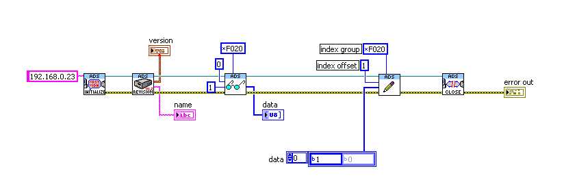 Meine ADS VIs funktionieren grundsätzlich im Byte Modus. Darum herum müsste man gegebenenfalls noch VIs schreiben um spezifische logische Bits oder eventuel 16 Bit analoge Werte anzusprechen.