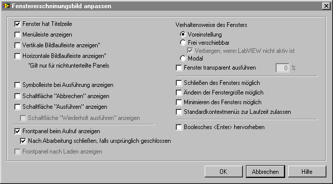 Da ich den Prozess mit einem Übersichtsbild visualisieren und dort auch Einstellungen über SubVIs - Dialogfenster - vernehmen möchte, stoppt das Hauptprogramm nun solange das neue Dialogfenster offen ist.