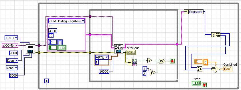 für mein labview8.6 habe ich die modbus-bibliothek installiert und bin nun am try-and-failure-n, wie ich das VI denn aufbauen muss, damit's die daten erstmal empfängt.