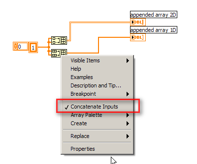 Willst du mit deiner Frage darauf hinaus, dass das Zusammenfügen zweier 1D-Arrays per Build-Array sowohl ein 1D- als auch ein 2D-Array als Ausgang haben kann?