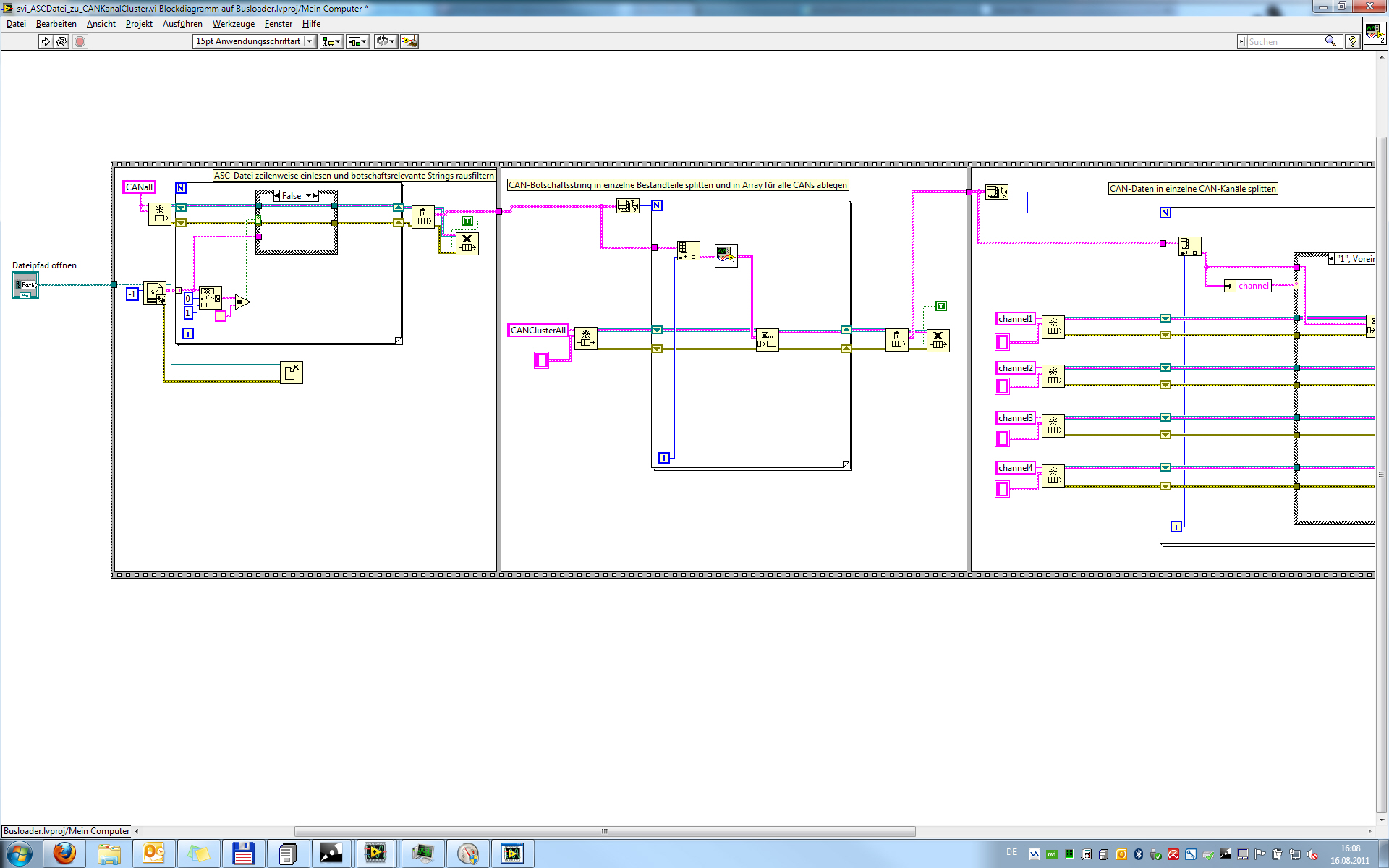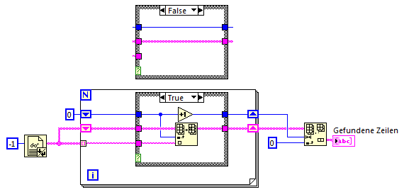 Anbei noch ein kleiner Teilausschnitt meines Sub-VI welches von außen durch eine While-Schleife umrahmt: