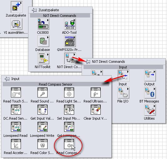 Du findest das VI in der Palette "Nxt Direct Commands" -> "Input".