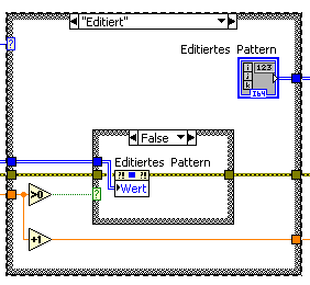 Falls du damit "Editiertes Pattern 3" meinst ist klar wieso es nicht klappt. Der Schleife läuft unendlich und der Ausgang wird solange nicht beschrieben bis die Schleife beendet ist -> keine Veränderung deines Ausganges!